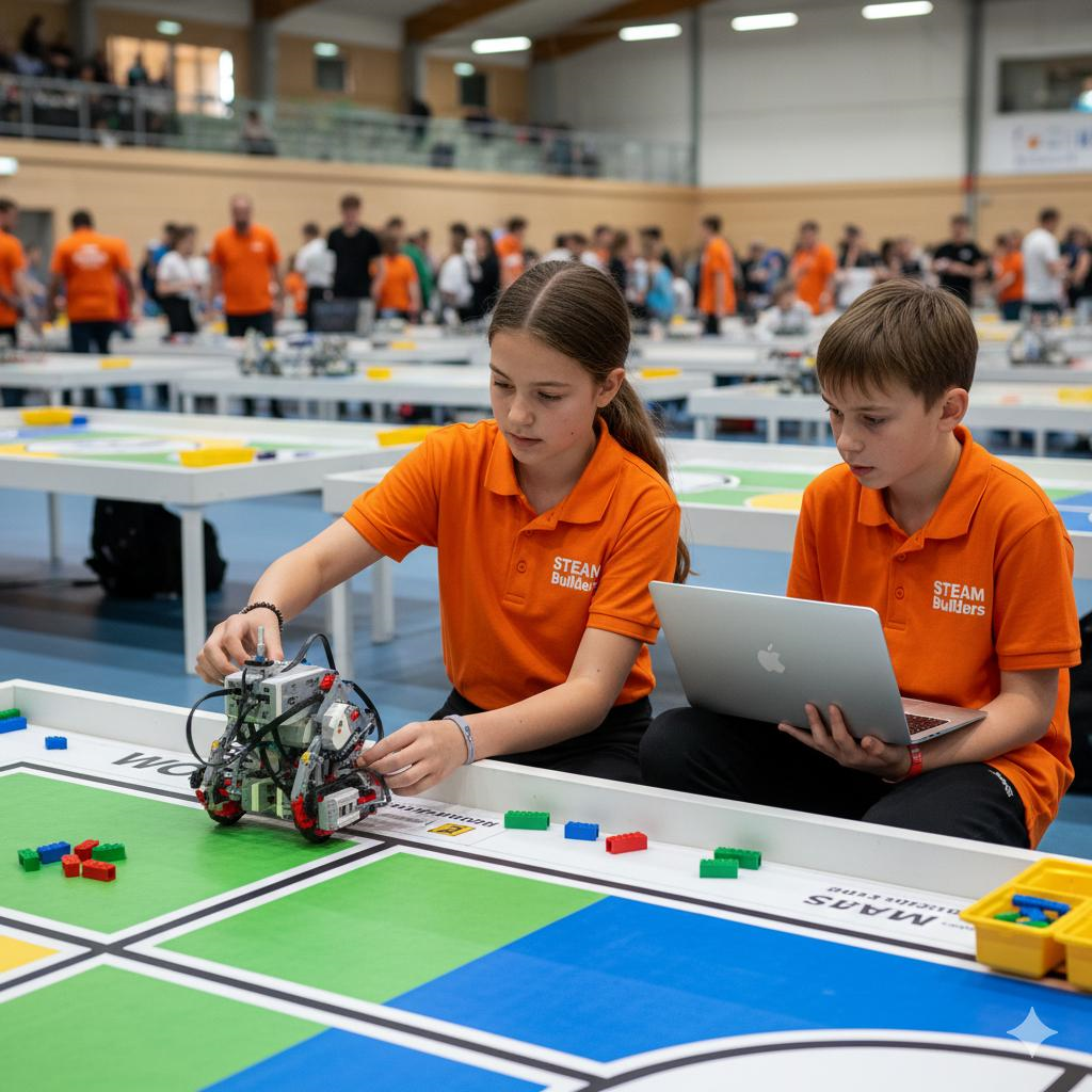 O alicerce do competidor de sucesso. Os alunos aprendem a construir robôs estruturados e a programar estratégias eficientes para cumprir missões, simulando desafios de torneios.